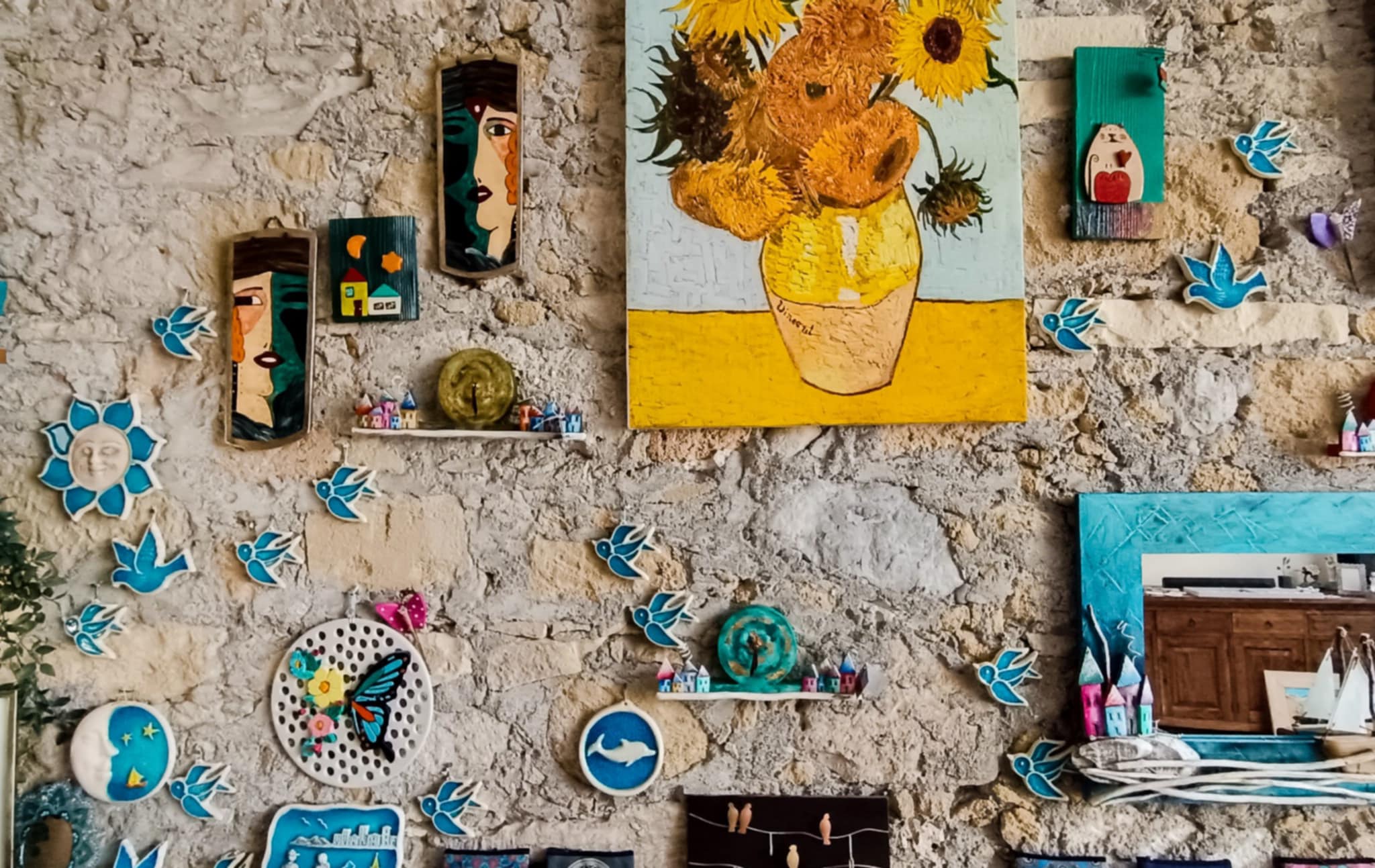 All materials enjoy excellent quality, thus from clay with earth natural colours (for indoor and outdoor). I have them outside on the wall of the shop as well for over three years and the colours never changed.